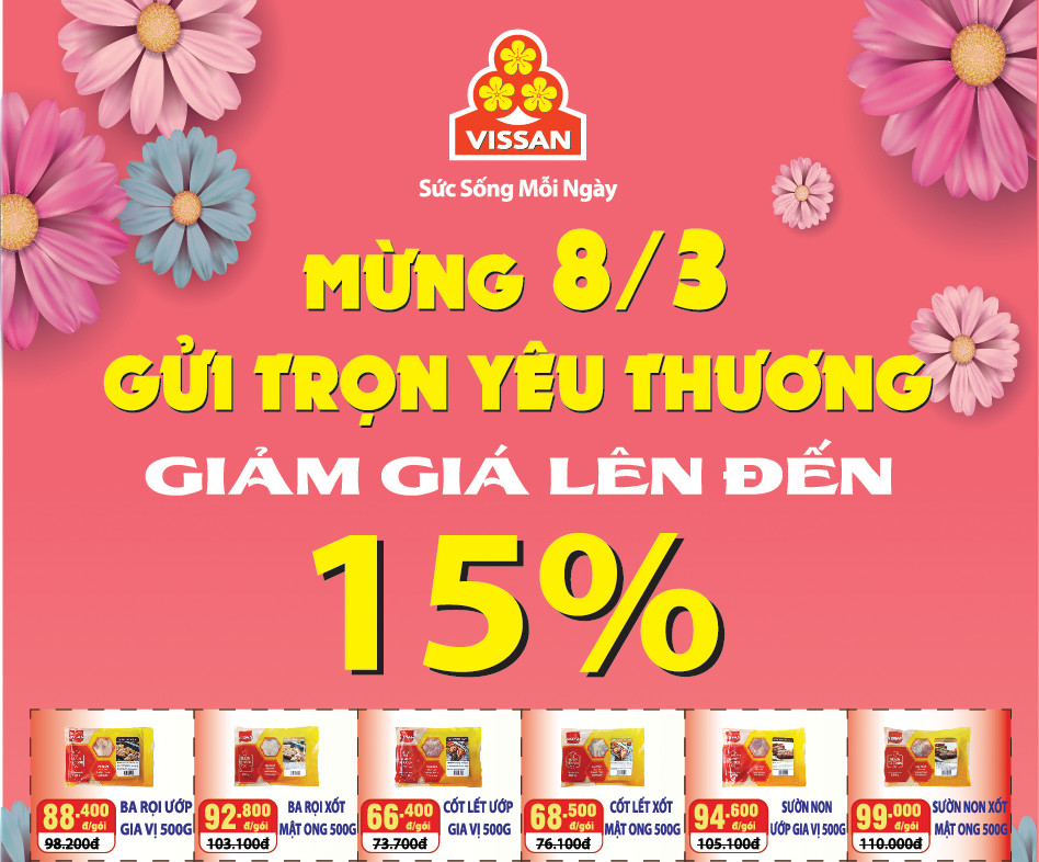 - Vậy thì, VISSAN cũng phải có ưu đãi đặc biệt giảm giá 07% - 15% các mặt hàng chế biến và hàng tiêu dùng, với mong muốn góp thêm niềm vui trong ngày lễ yêu thương này.